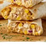 These quick and flavorful Chicken Wraps are perfect for a satisfying dinner or a hearty picnic lunch. Ready in just 15 minutes, they combine shredded cooked chicken with sweetcorn, creamy cheese, and barbecue sauce, wrapped in a soft tortilla. You can enjoy them fresh or pan-fried for a golden, melty finish.