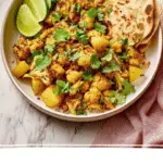 The magic of serving Aloo Gobi: Roasted Potatoes and Cauliflower in Spiced Tomato Masala Recipe lies in fresh garnishes. A generous handful of chopped cilantro scattered on top adds a beautiful pop of green and fresh herbal notes that balance the warm spices. For an extra zing, a final splash of lime or lemon juice right before serving amplifies the tangy brightness, making every bite sing with flavor.