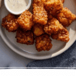 Baby Bloomin’ Onions are crispy, golden-fried cipollini onions sliced to resemble a flower bloom. Coated in a spiced flour mixture and buttermilk, then deep-fried to perfection, they make a perfect appetizer or snack, especially served with a creamy buttermilk ranch dipping sauce.