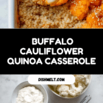 This Buffalo Cauliflower Quinoa Casserole is a flavorful and wholesome vegan dish combining protein-packed quinoa, tender cauliflower florets, and a spicy buffalo sauce. Baked to perfection with a creamy almond milk and vegan yogurt mixture, and optionally topped with vegan cheese, this casserole makes for a delicious, nutritious, and satisfying meal perfect for gatherings or a healthy weeknight dinner.