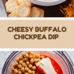 This cheesy buffalo chickpea dip is a flavorful and vegetarian twist on the classic buffalo dip. Combining the creaminess of Greek yogurt and cream cheese with the spicy kick of buffalo sauce, this game-day favorite is easy to prepare and perfect for serving with veggies, crackers, or chips.