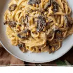 A crisp white like Sauvignon Blanc or a lightly oaked Chardonnay pairs beautifully with the creamy texture and earthy mushrooms. Red wine lovers might enjoy a light Pinot Noir to match the rich flavors peacefully.