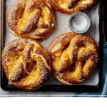 - Apply Egg Wash and Salt: Brush the top of each pretzel with the egg yolk and water mixture, then sprinkle with coarse salt.