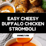 Delicious and flavorful Cheesy Buffalo Chicken Strombolis combine tender shredded chicken tossed in spicy buffalo sauce with creamy cheeses and fresh herbs wrapped in golden, flaky pizza dough. Perfect as a savory snack or hearty meal, these strombolis are baked until cheesy and golden brown, served with ranch and extra buffalo sauce for dipping.