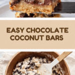 Delicious Chocolate Coconut Bars featuring a buttery graham cracker crust, a rich and gooey chocolate center, and a golden, flaky coconut topping. This easy-to-make dessert comes together in just 10 minutes of prep and bakes to perfection in under 30 minutes, perfect for a sweet treat or special occasion.
