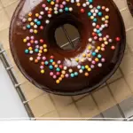 - Glaze the Doughnuts: Dip each cooled doughnut halfway into the melted chocolate glaze. Let the excess chocolate drip off, then transfer to a wire rack. While the glaze is still wet, scatter sprinkles over the doughnuts if desired.