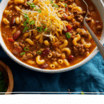 Enhance your serving of Cozy Chili Mac with Beef, Pasta, and Cheddar Recipe by topping it with sliced green onions for freshness, a dollop of sour cream to balance the spices, diced tomatoes for juiciness, or even a pinch of cayenne pepper if you’re craving extra heat. These little extras make each bite exciting and add layers of flavor and texture.