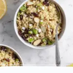 A fresh and vibrant Cranberry Quinoa Salad combining fluffy quinoa with tart cranberries, crunchy almonds, creamy feta, and a zesty lemon-garlic dressing. Perfect as a light lunch or a nutritious side, this salad is easy to prepare and gets more flavorful when chilled.