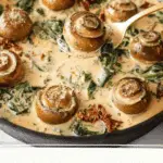 Creamy Garlic Butter Tuscan Mushrooms is a decadent and flavorful skillet dish featuring tender mushrooms simmered in a rich garlic butter and cream sauce with sun-dried tomatoes, spinach, and Parmesan cheese. This quick and easy recipe makes a comforting side or a hearty topping for pasta, rice, or mashed potatoes, delivering a perfect balance of savory, creamy, and herbal notes.