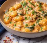 This recipe relies on smoked salmon and cream cheese for its signature flavor and texture, so it would need a few creative swaps. Vegan cream cheese and smoked tofu or mushrooms might work as substitutes, but it won’t taste quite the same as the classic Creamy Salmon Gnocchi Recipe.