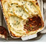 This Classic Shepherd’s Pie recipe features a savory ground beef or lamb filling with aromatic vegetables and fresh herbs, topped with creamy mashed potatoes and baked until golden and bubbling. A comforting, hearty dish perfect for family dinners and gatherings.