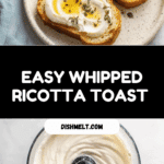 This Easy Whipped Ricotta Toast recipe features crusty sourdough bread toasted to golden perfection, topped with a smooth and fluffy homemade whipped ricotta infused with lemon zest and olive oil. Drizzled with a fresh lemon-thyme honey, this delightful toast is perfect for a quick breakfast or elegant snack. The combination of tangy ricotta and sweet, aromatic honey creates a balanced and irresistible flavor.