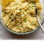 - Fluff and season: Fluff the couscous gently with a fork and stir in the olive oil, lemon juice, and salt to enhance the flavor and add moisture.