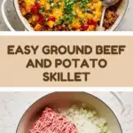 Serve this Ground Beef and Potato Skillet with Cheddar and Green Onions Recipe right from the pan for a rustic, homestyle vibe that invites everyone to dig in. For a family-style dinner, scoop generous portions onto warm plates and garnish individually. Alternatively, spoon it into baked bell peppers or sweet potatoes for a fun twist that’s perfect for entertaining or lunch leftovers with a little flare.