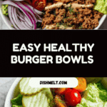 This Healthy Burger Bowls recipe offers a flavorful, low-carb alternative to traditional burgers. Ground beef seasoned with aromatic spices is browned and served atop fresh romaine lettuce along with tomatoes, pickles, and red onion. A tangy and creamy special sauce made from mayo, ketchup, mustard, pickle juice, and seasonings brings all the flavors together, making it a perfect quick and nutritious meal that’s perfect for a wholesome lunch or dinner.