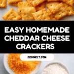 These homemade cheese crackers, inspired by classic Cheez-Its, are crispy, cheesy, and perfect for snacking. Made with sharp cheddar, all-purpose flour, cold butter, and plain yogurt, these crackers are easy to prepare using a food processor and baked to golden perfection. They deliver a delightful crunch and rich cheddar flavor, making them an irresistible homemade snack for cheese lovers.