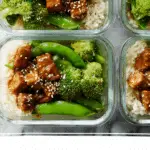- Assemble the Bowls: Spoon the sauced chicken over the rice and vegetables in each storage container. Garnish each portion with sesame seeds if desired.