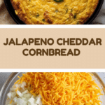 This Jalapeno Cheddar Cornbread is a flavorful, spicy twist on classic cornbread, featuring sharp cheddar cheese, fresh jalapenos, sweet corn kernels, and a hint of garlic. Baked in a cast-iron skillet for a perfect golden crust and moist interior, it’s an ideal side for any meal or a satisfying snack.
