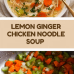 This comforting Lemon Ginger Chicken Noodle Soup combines tender chicken breasts, flavorful ginger and garlic, fresh vegetables, and broad noodles in a savory chicken broth, brightened with a splash of fresh lemon juice. Perfect for any season, this hearty soup is easy to prepare and serves as a nutritious meal to warm you up.