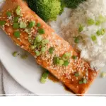Once out of the oven, let the salmon rest briefly. Then, sprinkle with chopped green onions and toasted sesame seeds if you like. These simple touches bring freshness and an inviting crunch to your dish before serving.