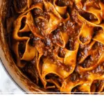 This One Pot Short Rib Bolognese is a rich and hearty Italian-inspired dish, featuring tender, slow-cooked bone-in beef short ribs simmered in a velvety tomato sauce with aromatic vegetables and spices. The result is a deeply savory sauce that coats wide egg pappardelle noodles, perfect for a comforting winter meal.