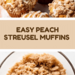 These Peach Streusel Muffins are moist, tender, and bursting with fresh peaches, topped with a crunchy cinnamon-sugar streusel and finished with a sweet vanilla icing drizzle. Perfect for breakfast or a delightful snack, these muffins combine a fragrant blend of warming spices and a luscious crumb topping for a comforting, irresistible treat.