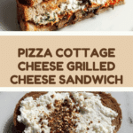 This Pizza Cottage Cheese Grilled Cheese is a delicious twist on the classic grilled cheese sandwich, combining creamy cottage cheese, tangy tomato sauce, fresh basil, and flavorful sundried tomatoes to create a savory, Italian-inspired meal. Perfect for a quick lunch or snack, this recipe features crispy, buttery bread with a melty, cheesy interior bursting with fresh and vibrant pizza-like flavors.