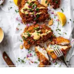 For a pop of color and flavor contrast, finely chopped flat leaf parsley and red onion not only enhance the plate visually but also provide fresh herbal notes and mild crunch, making each bite more vibrant and satisfying.