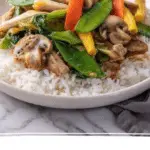 A quick and easy Chicken Chop Suey recipe featuring tender chicken slices and colorful vegetables cooked in a flavorful, thick savory sauce. Perfect served over steamed rice, this delicious American-Chinese dish comes together in just 20 minutes, making it an ideal weeknight dinner.