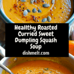 This Roasted Curried Sweet Dumpling Squash Soup is a creamy, cozy, and nourishing soup made with roasted sweet dumpling squash, aromatic spices, and simple whole-food ingredients. Naturally sweet and spiced with curry and ginger, it’s perfect for a healthy and hearty fall meal.