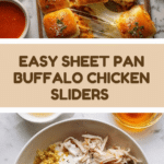 Sheet Pan Buffalo Chicken Sliders feature tender shredded chicken tossed in spicy buffalo sauce, layered with melted mozzarella and Parmesan cheeses, all nestled in soft King’s Hawaiian rolls. This easy-to-make dish combines zesty and cheesy flavors, perfect for game day, BBQs, or a tasty appetizer.