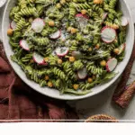 This Spring Pasta Salad with Asparagus, Chickpeas & Basil Vinaigrette Recipe comes together from a handful of simple yet essential ingredients that balance flavor, texture, and color beautifully. Each item plays a crucial role from the garden-fresh crunch of radishes to the satisfying bite of perfectly cooked pasta.