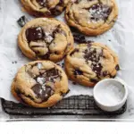 7. Finish and Cool: Remove the baking sheets from the oven and immediately sprinkle the cookies with flaky sea salt if using. Allow the cookies to cool slightly on the baking sheet before transferring them to a wire rack or serving.